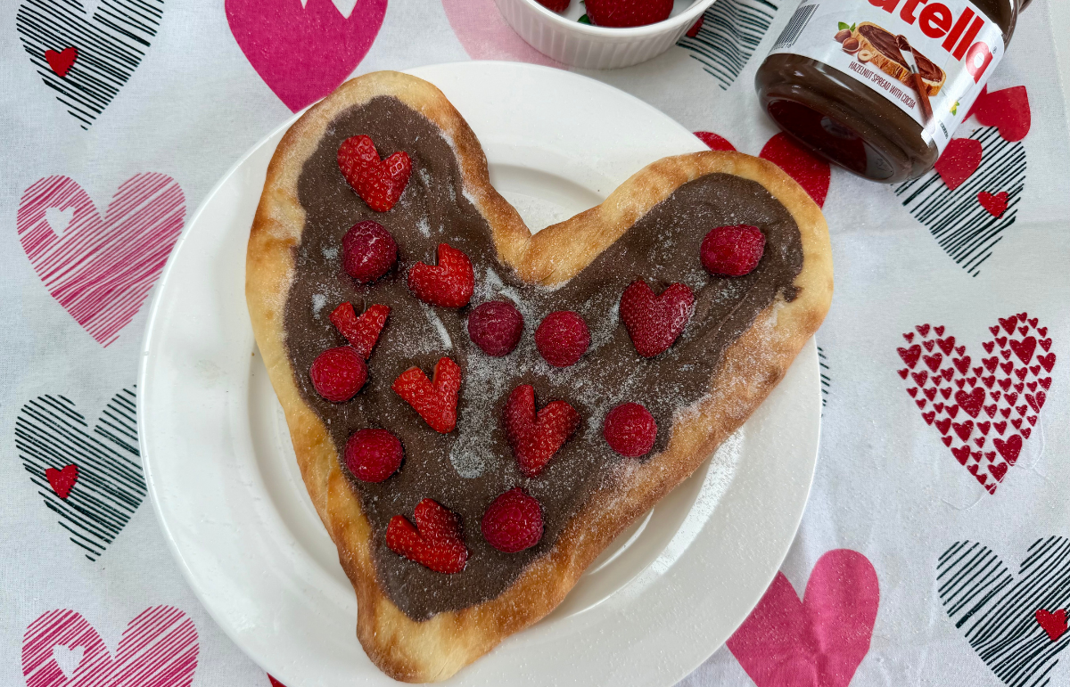 Love is in the air and on the menu! This Valentine’s Day, add a little extra love to the table with our Valentine’s Pizza Heart topped with Nutella, strawberries, and raspberries for a sweet, fruity treat.